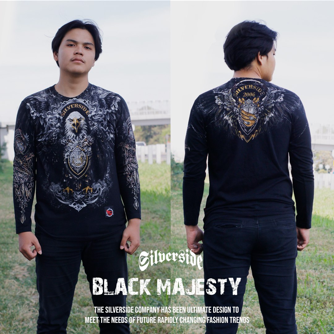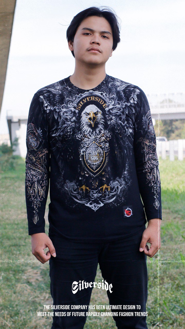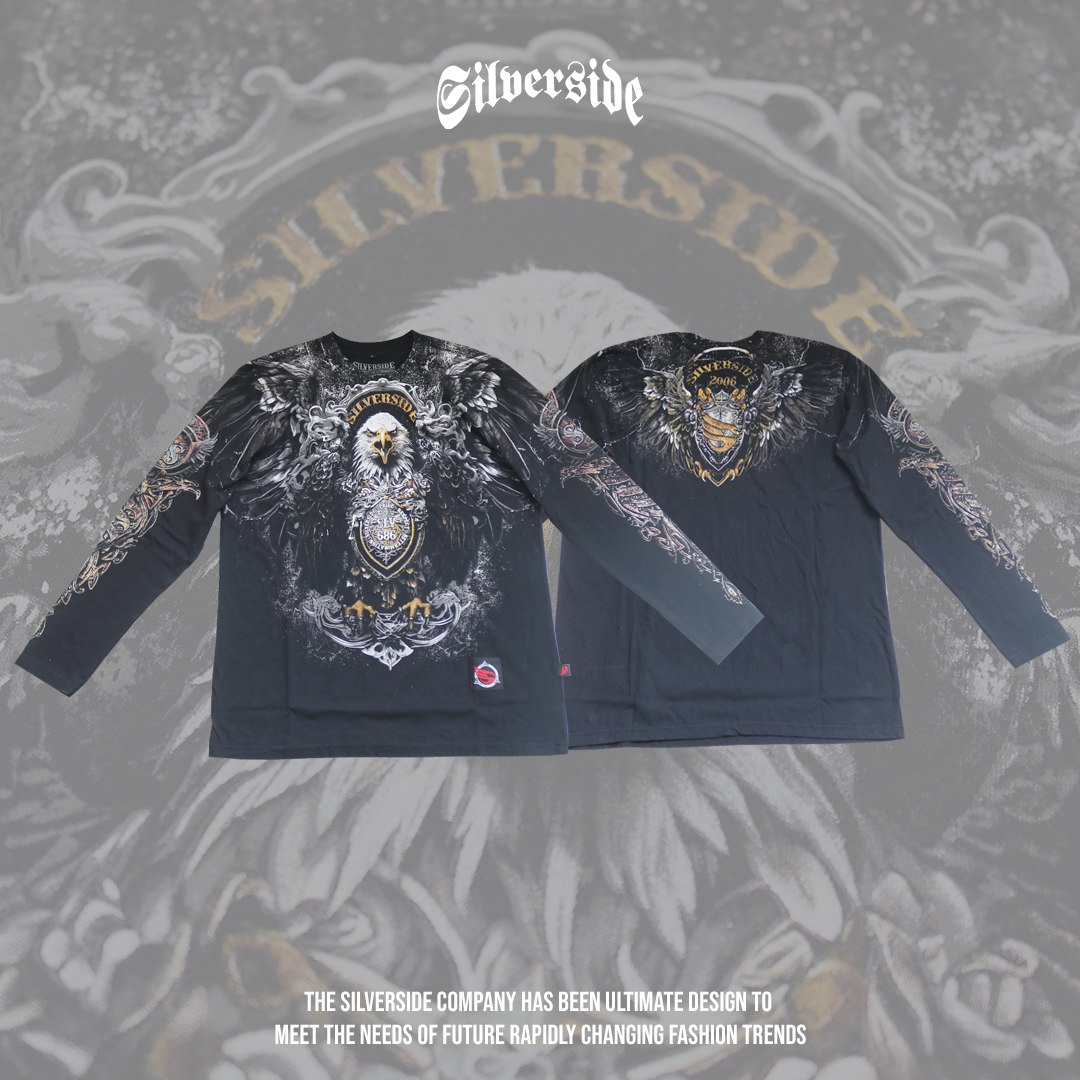 Kaos Black Majesty lengan panjang dari brand Silverside, berwarna hitam pekat, hadir dengan desain fullprint yang memukau. Gambar elang besar di bagian depan menampilkan kesan gagah dan berani, sementara tulisan “Silverside” di bagian belakang menambah nilai eksklusif dan kekuatan desain. Terbuat dari bahan katun 30s combad yang berkualitas tinggi, kaos ini sangat nyaman dipakai sepanjang hari, dengan tekstur lembut dan daya tahan yang luar biasa. Menggunakan teknik sablon discharge, desain pada kaos ini tetap tajam dan tidak mudah pudar meskipun sering dicuci. Kaos Black Majesty adalah pilihan sempurna bagi kamu yang ingin tampil dengan gaya streetwear yang bold, modern, dan penuh karakter.