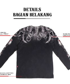 Kaos Michigan lengan panjang dari brand Silverside, berwarna hitam fullprint dengan gambar tengkorak, merupakan pilihan sempurna untuk tampilan edgy dan modern. Dilengkapi dengan sentuhan bordir di bagian lengan, kaos ini semakin menonjolkan kesan detail yang unik dan berkelas. Terbuat dari bahan katun 30s combad yang nyaman dan berkualitas, kaos ini tidak hanya memberikan kenyamanan maksimal tetapi juga daya tahan yang lama. Teknik sablon discharge pada desain tengkorak memastikan gambar tetap tajam dan awet meskipun sering dicuci. Dengan desain yang bold dan bahan yang nyaman, kaos Michigan ini sangat cocok untuk kamu yang ingin tampil beda dengan gaya streetwear yang berani dan stylish.