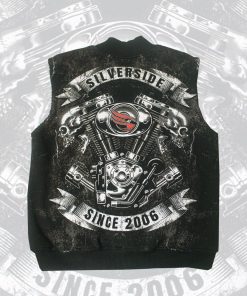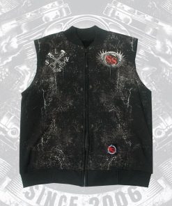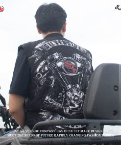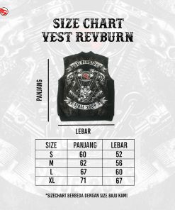 Keunikan vest ini terletak pada sablon discharge berkualitas tinggi dengan gambar mesin motor yang menonjolkan karakter maskulin dan klasik.