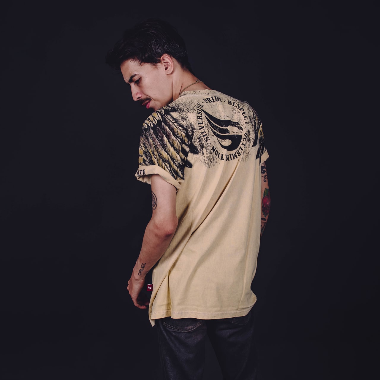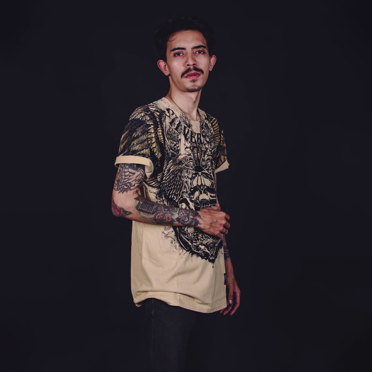 Kenalkan VULTURE dari SILVERSIDE, t-shirt washing premium dengan desain tshirt custom bergambar tengkorak dan burung elang yang menciptakan tampilan garang dan penuh karakter, hadir dalam kaos berwarna cream yang elegan. Dibuat dari bahan berkualitas tinggi dengan teknologi washing terkini, VULTURE menghadirkan efek washed look otentik yang memadukan nuansa vintage dan modern, memberikan kenyamanan maksimal sekaligus tampilan yang standout. Desain perpaduan tengkorak dan burung elang melambangkan kekuatan, ketangguhan, dan kebebasan, menjadikannya pilihan sempurna bagi pecinta fashion urban yang mencari tshirt custom dengan sentuhan artistik yang kuat.